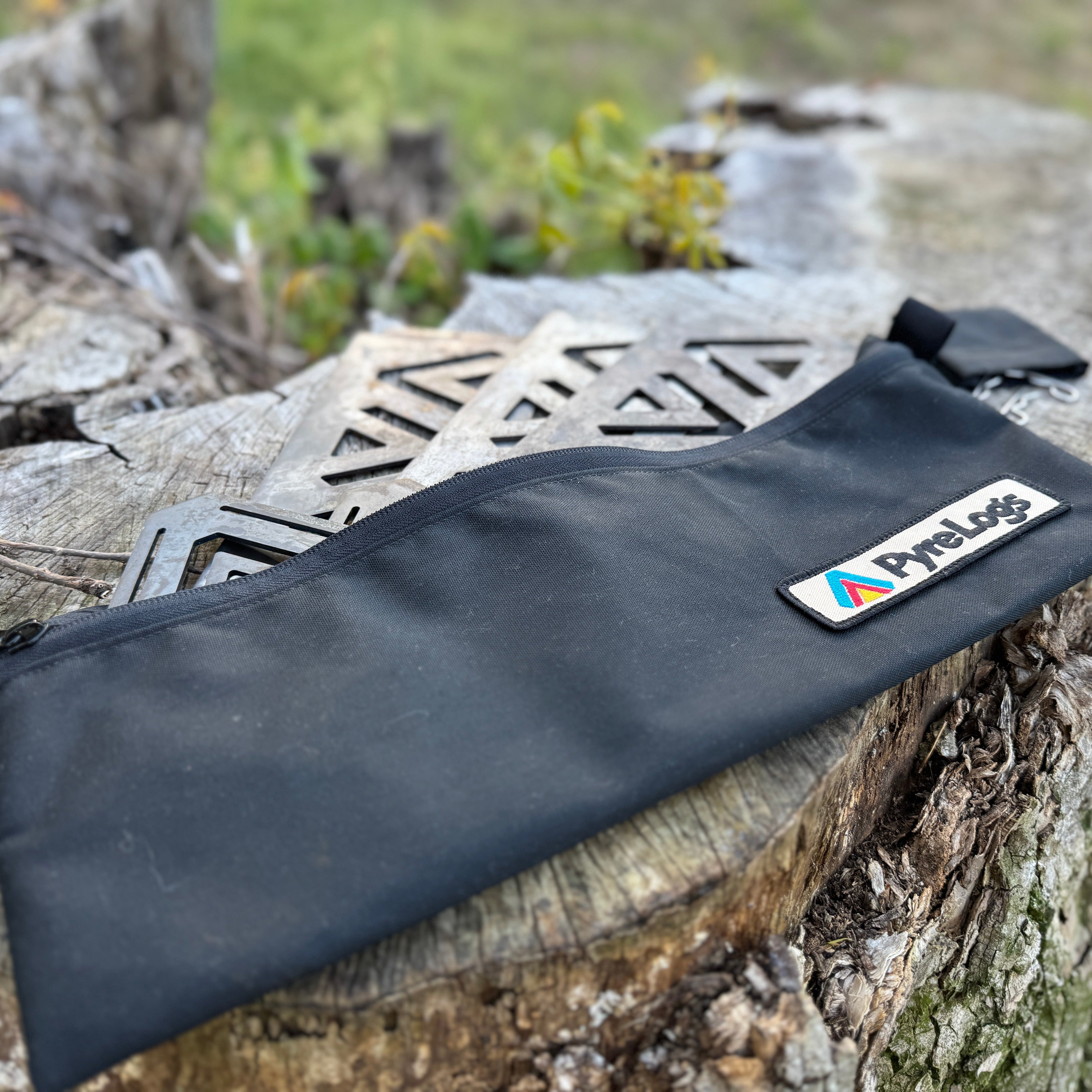 Minimize dirt and ash when breaking down camp and traveling with the Flat-Pack Zip Bag. Designed for packable storage of PyreLogs (Original) reusable campfire bases, this durable bag offers an easy packing solution when gear storage is limited.